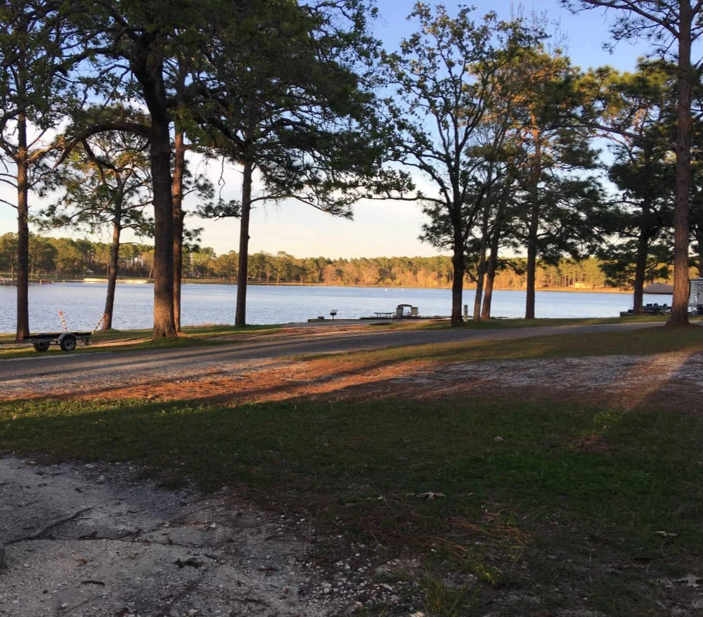 Leveling the RV was a bit of a challenge on the rocky terrain, but we got it right on the second try. Then it was a pretty typical setup: chairs out, grab a bottled water, and settle in to enjoy the view. We looked over the activities available and decided on a morning hike with the possibility of kayaking in the afternoon. That is until we saw several signs posted about the alligators in the lake! Hmm. There were several people boating and a couple of kayaks in the water and there is actually a swimming beach, so how aggressive could these gators be? I guess we will find out tomorrow! We ended the day sitting outside, playing the uke, and enjoying the warm breeze until the moon rose. A full moon. It was a beautiful sight through the tall pines.